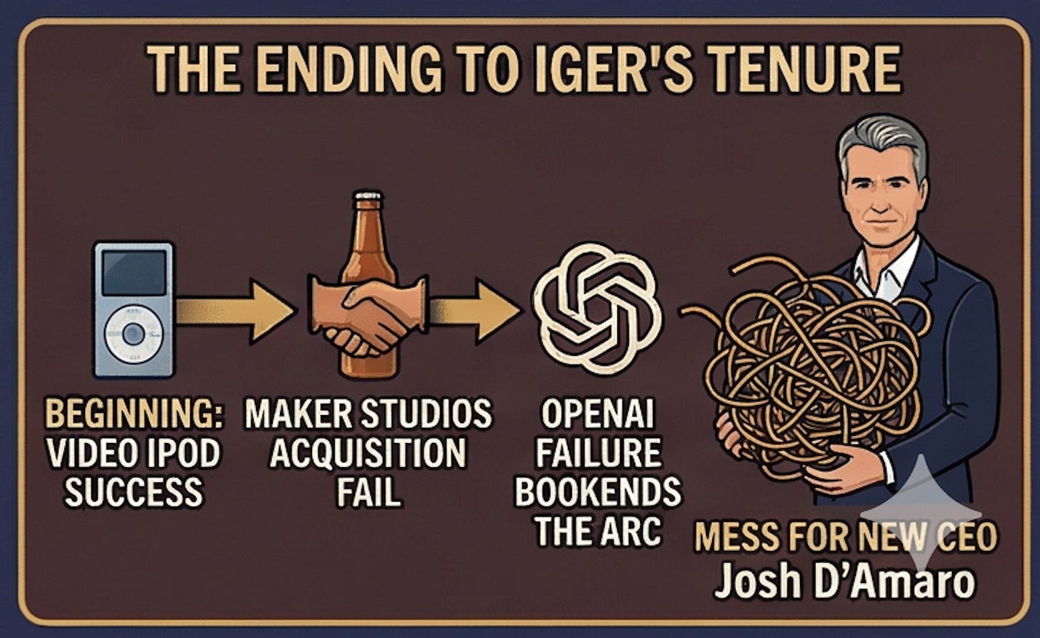 The OpenAI failure bookends the arc of Iger's failed strategy of leveraging Disney's IP over tech companies and leaves an unfortunate mess for new CEO Josh D'Amaro.