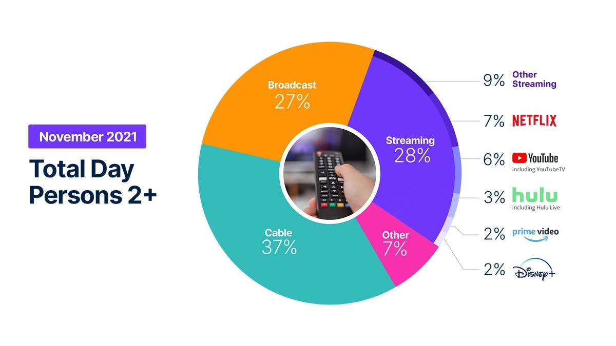 First, I should have included Nielsen's The Gauge, which provides "a monthly macroanalysis of how consumers are accessing content across key television delivery platforms, including Broadcast, Streaming, Cable and Other sources."
