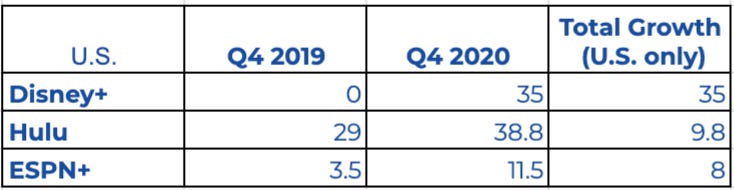 How does Star Plus help Disney Plus churn? With the business logic of being bundled together. Although we do not know churn metrics from Disney DTCI, we do know that both ESPN+ and Hulu have grown almost by exactly the same volume since Disney+’s launch and being included in a bundle (NOTE: Disney+ U.S. number is an estimate partially based off my own estimates, and partially based off of some helpful analysis from The Entertainment Strategy Guy).