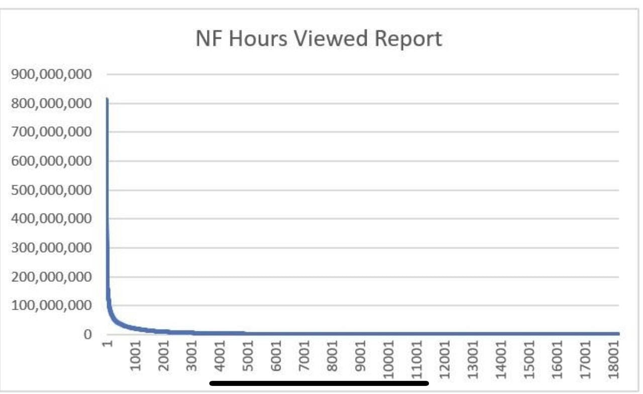 So, a reasonable interpretation of “What We Watched” is that Netflix is making a statement to post-strikes Hollywood that it has the standard for a successful streaming business model. This presents a two-fold problem for its legacy media competitors who offer little data transparency beyond participation in Nielsen Top 10s. First, their datasets will inevitably be smaller because their scale and total consumption are lower. Second, the standard distribution of consumption will inevitably look the same: a “power law” distribution where the difference between consumption of the most-watched content and the rest is non-linear and exponential.