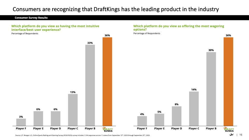 MGM CEO William Hornbuckle explained on the Q3 earnings call that the problem is the BetMGM consumer-facing product “wasn't where it needed to be” over the last 18 months. Meanwhile, DraftKings Co-Founder, Chairman & CEO Jason Robins told investors that its success reflected the company’s belief that “the heart and soul of the organization is product and technology.” As a result, analysts like those I spoke with over the weekend and at Oppenheimer have concluded that “[C]ompetencies in product development and customer acquisition that [DraftKings] utilized to become the daily fantasy sports market leader will allow the company to be a critical player in accelerating the shift in US sports betting from [around] $150 billion wagered illegally/offshore to licensed domestic operators.”