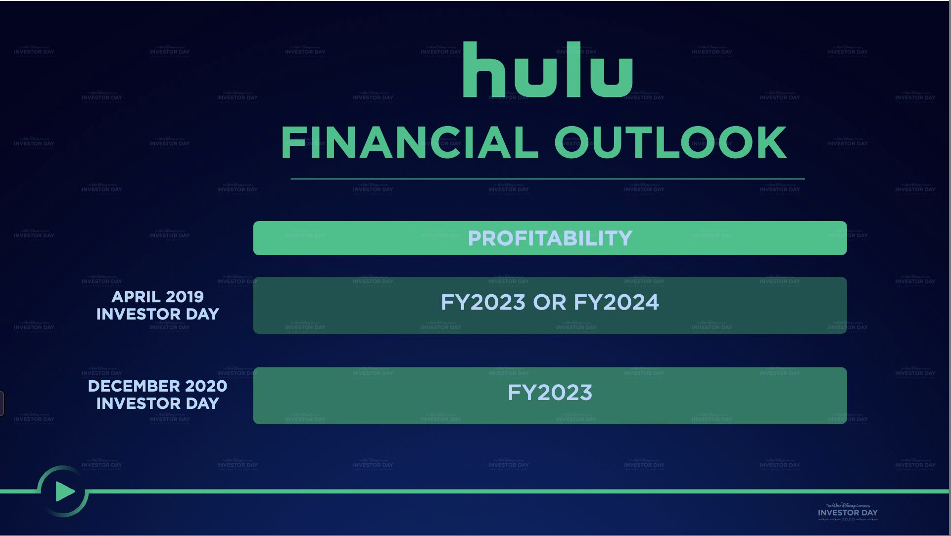 We got a clear path ahead for Hulu. These two slides from CFO Christine McCarthy tell us they remain confident (but less bullish) on Hulu growth and profitability.