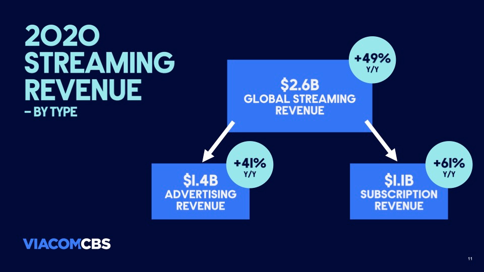 ViacomCBS reported that it had $845MM in domestic streaming and digital advertising revenues in Q4 2020, but annually it generated $1.4B in global advertising revenues in streaming.