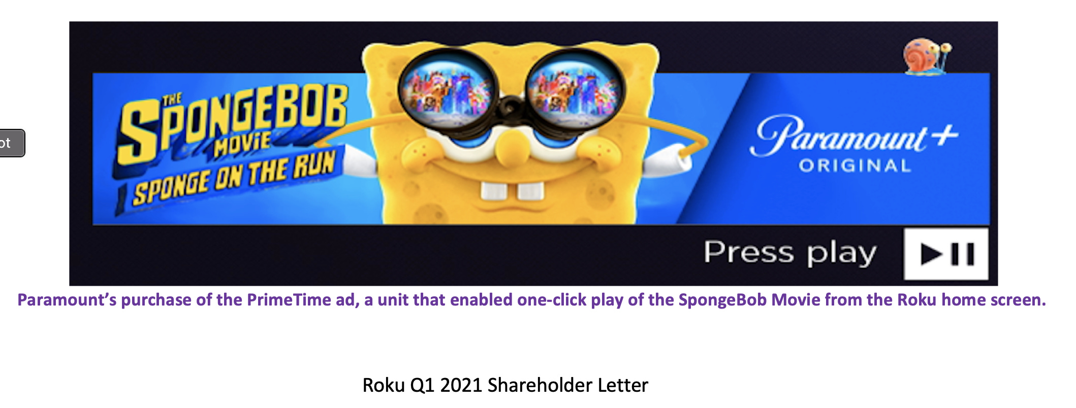 Third, Paramount+’s marketing efforts got some love from Roku’s Q1 2021 Shareholder Letter, with ad campaigns for The SpongeBob Movie, The Real World reunion, and Your Honor.