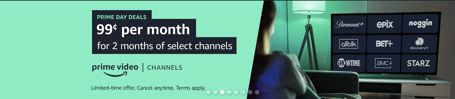 Second, I think Prime Day will be an additional catalyst: ~150MM U.S. Prime Members are being educated that they can create incredibly cheap bundles through Amazon Prime Channels. They will be back for more.