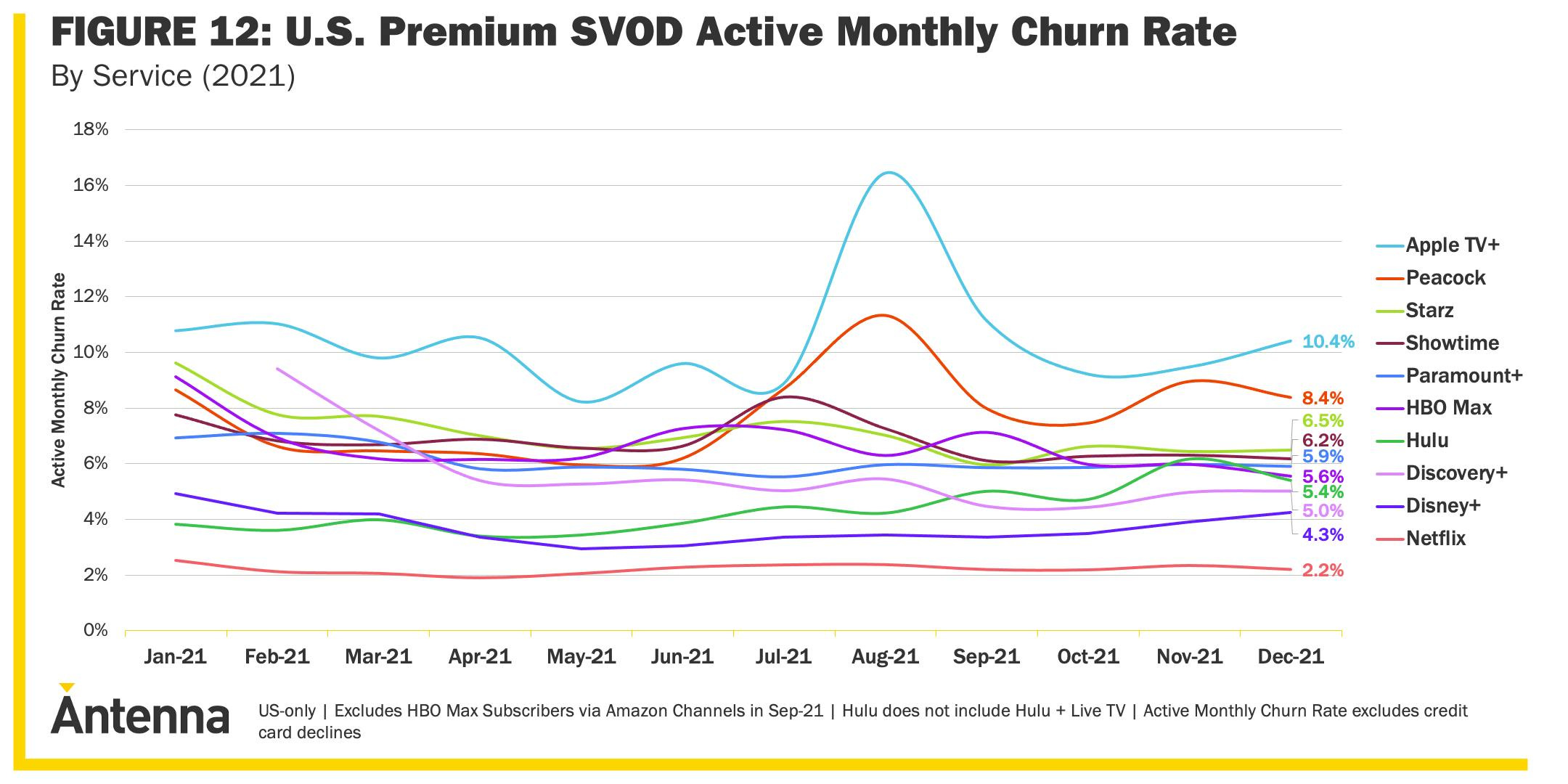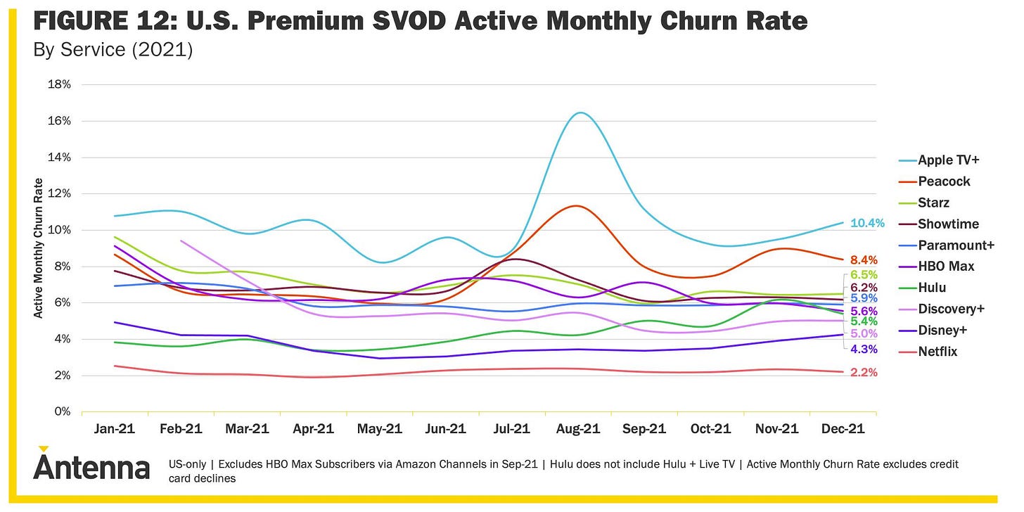 As per Antenna, Hulu has higher churn than Discovery+, which does not have personalized software.
