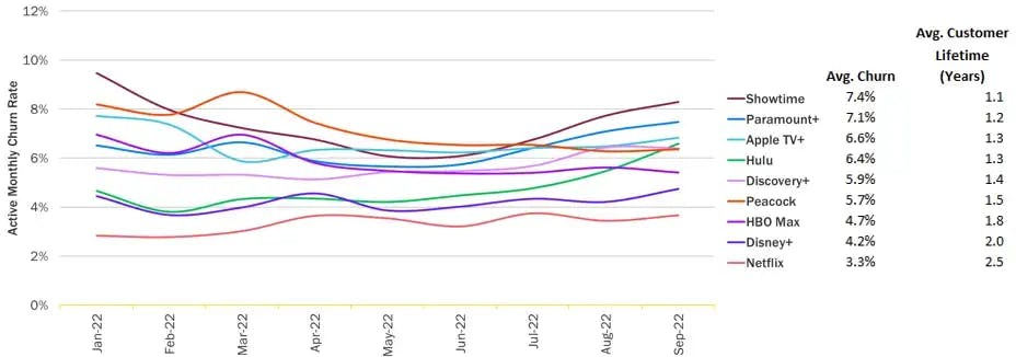 Leading subscriber analytics provider Antenna does not include AMC or other niche platforms in its churn data. But, it seems fair to assume that they are higher than the nine or so that Antenna lists (and which Doug Shapiro, Senior Advisor at BCG, analyzed recently), means their monthly churn may be higher than 7%.