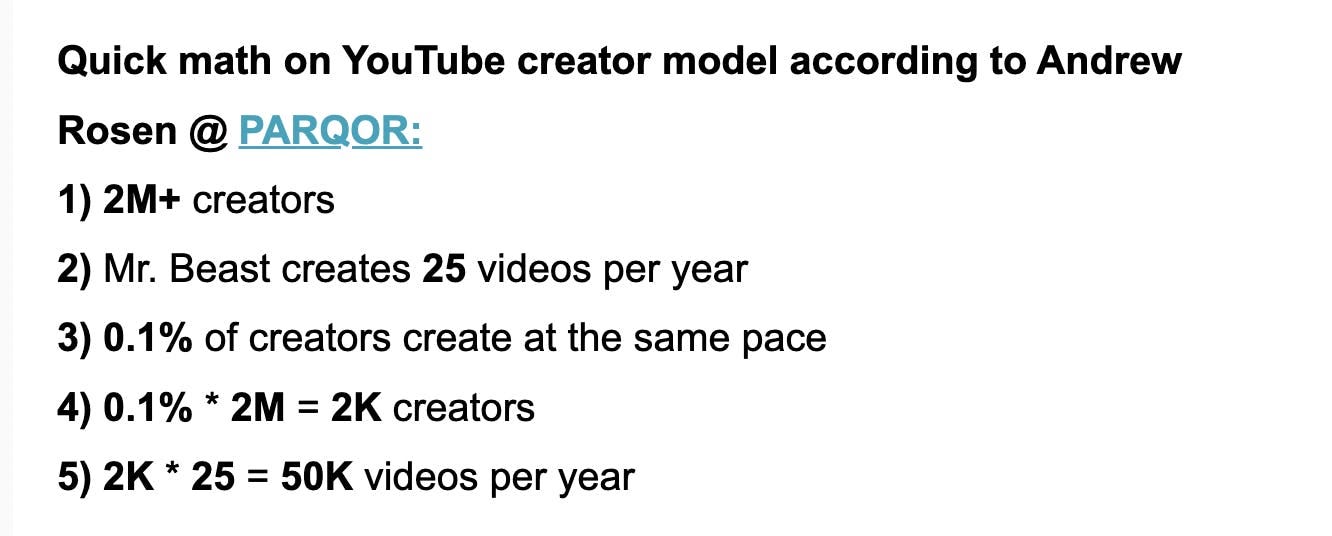 Michael Beach of Cross Screen Media recently wrote an elegant summary of my math for YouTube’s creator economy advantage in a State of The Screens newsletter (which I highly recommend):