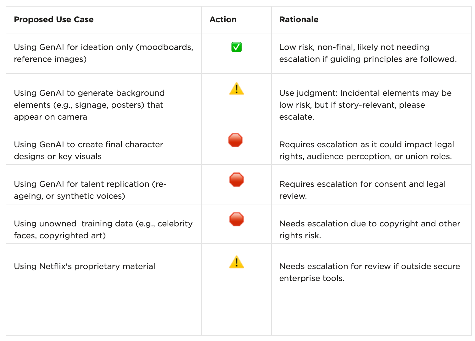 Last month Netflix released guidelines for its partners on how to use generative AI for content production. It outlined five principles for all use cases: