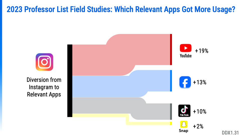 Meta's counsel did not share comparable Instagram figures but implied similar patterns when discussing apps diverting usage from Instagram, with YouTube ranking first and TikTok third.