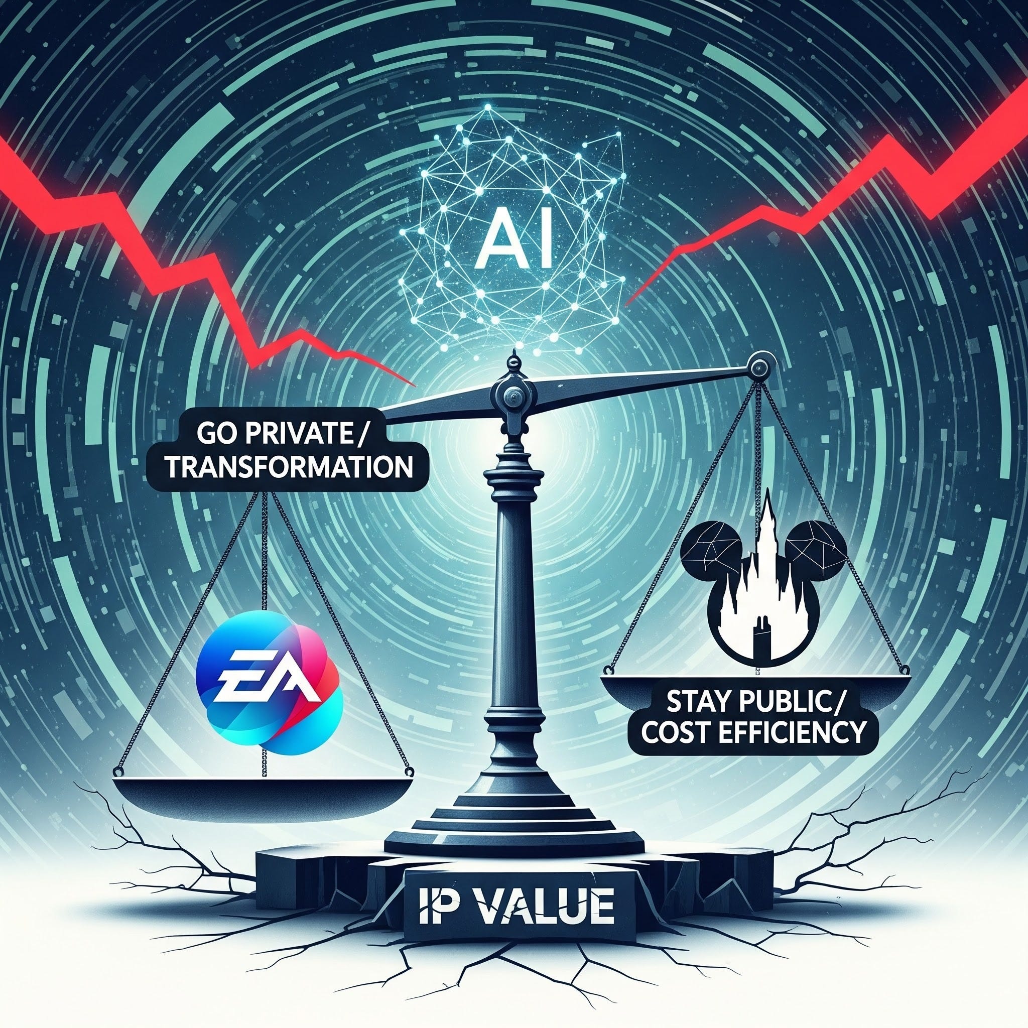 EA went private for $55B to pursue AI transformation public investors don't understand. Apple-Disney speculation reveals uncomfortable truths about structural transformation vs staying public.